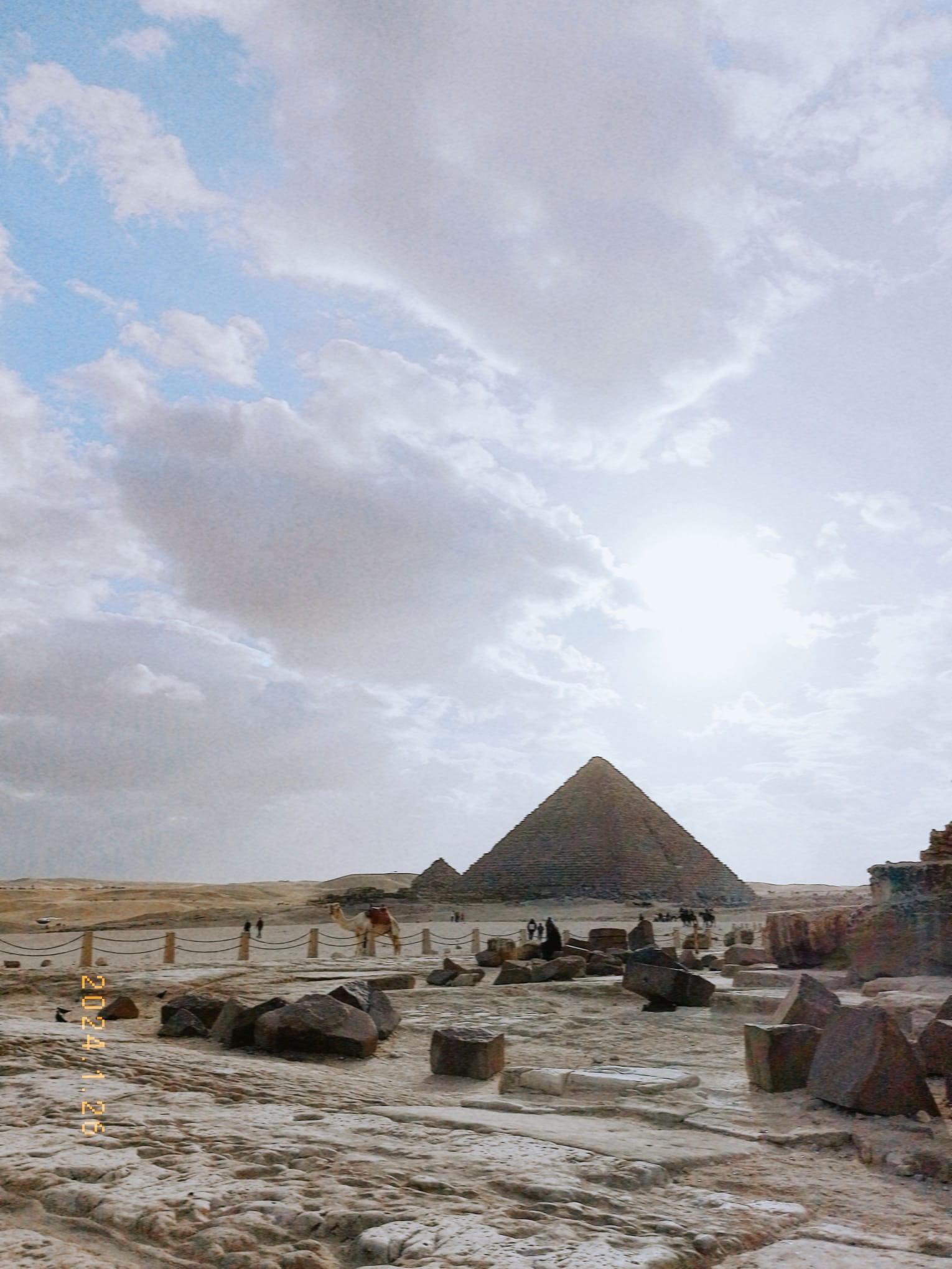 Now, three days into the journey, I find myself giddy with excitement, and it's not just from the copious amounts of caffeine in my tea. It's from my visit to the Pyramids of Giza, a testament to the grandeur of the ancient Egyptian civilization. These structures, erected by the three generations of the ancient Egyptian Pharaoh Khufu, stand majestically in Giza against the backdrop of the golden desert and the Gobi. The sight is awe-inspiring, and even the faint scent of camel dung in the air adds an authentic touch to the experience.